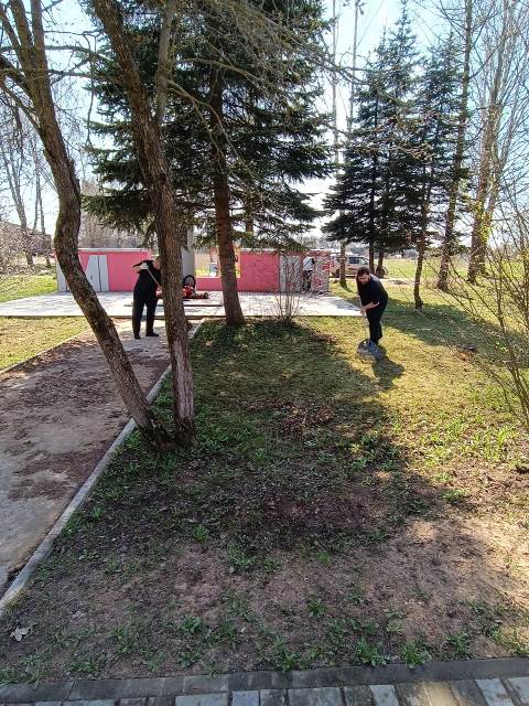 Так, помощники судей Михайлова М.В., Морозов Е.О., секретари судебного заседания Белинский Р.Ю., Михайлова О.А., работник по обслуживанию зданий Артемьева Е.В. убрали прошлогоднюю листву, мусор, подмели дорожки, очистили бордюры от песка, спилили старые деревья и кусты. После завершения работ сотрудники Дедовичского районного суда возложили к памятнику цветы.