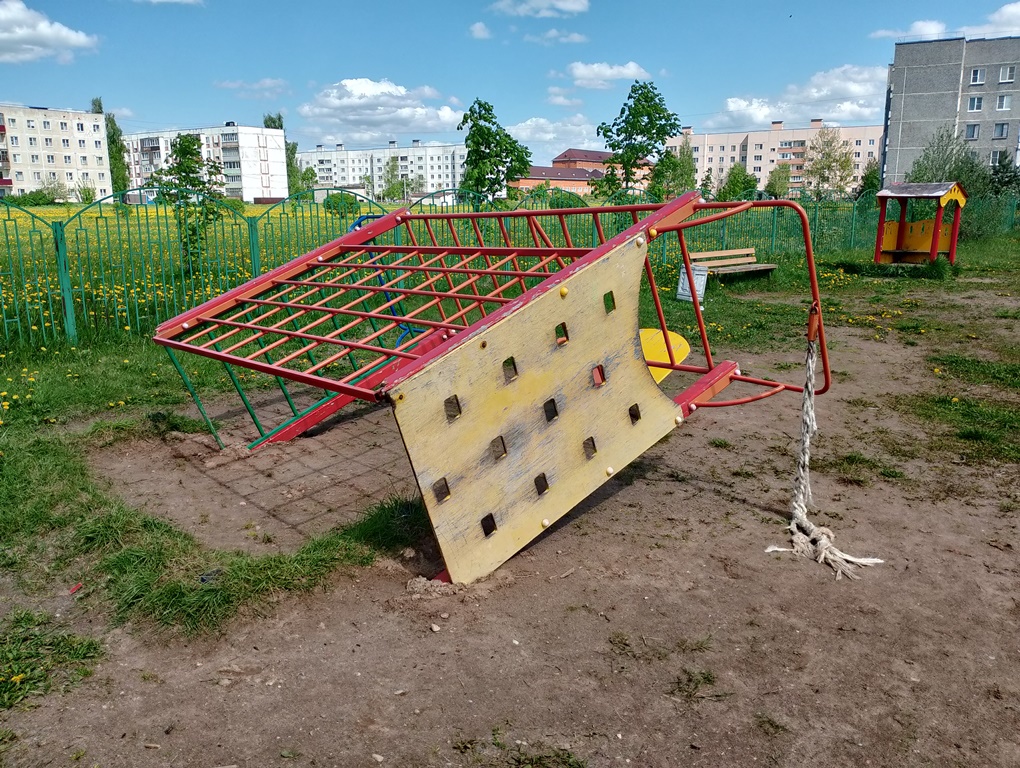 Прокурор просил обязать Администрацию городского поселения «Дедовичи» принять меры по проведению ремонта данного сооружения в течение 6 месяцев со дня вступления решения суда в законную силу. В судебном заседании представитель истца изменила исковые требования и просила обязать Администрацию городского поселения «Дедовичи» произвести демонтаж детского тематического игрового комплекса в срок до 01 ноября 2025 года. Представитель ответчика в судебное заседание не явилась, в письменном отзыве письменно ходатайствовала о рассмотрении дела без своего участия, указав, о согласии с исковыми требованиями и готовности произвести демонтаж указанного игрового комплекса в заявленный срок. Выслушав прокурора, исследовав письменные материалы дела, суд удовлетворил исковые требования прокурора в полном объеме, установив срок для их выполнения до 01 ноября 2025 года. Решение в законную силу не вступило. Фото предоставлены прокуратурой Дедовичского района. |